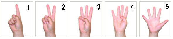 Mochten de bovenstaande foto’s niet duidelijk zijn, klik dan hier voor een filmpje waarin je duidelijk ziet hoe je op één hand kunt tellen.