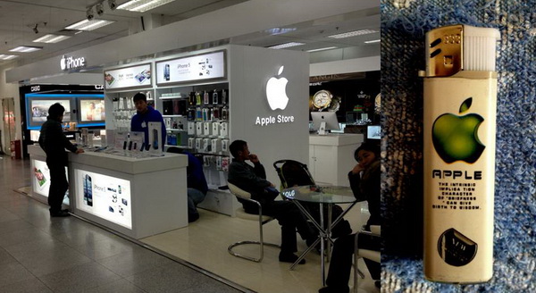 Een Chinese rechtbank zal alleen oordelen dat er sprake is van schending van het merkenrecht als een kopie zo gemaakt is dat de gemiddelde consument in de war raakt. In de bovenstaande afbeelding is de winkel in de linkerfoto dus niet toegestaan, want het is geen officiële Apple store die zich wel zo presenteert, en producten verkoopt die je ook in een echte Apple winkel aan zou treffen. Maar het product op de foto aan de linkerkant is prima, want elektronica en aanstekers zijn te verschillend.