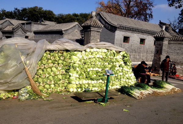 Er bestaat natuurlijk geen Chinesere groente dan Chinese kool (báicài). En dat de groente vooral heel erg ‘Beijing’ is blijkt uit de Latijnse naam: Brassica rapa pekinensis. Dat Chinese zit ‘m niet alleen in de naam, in de winter kun je in Noord-China echt niet om deze kool heen, zelfs niet als je heel erg je best doet.