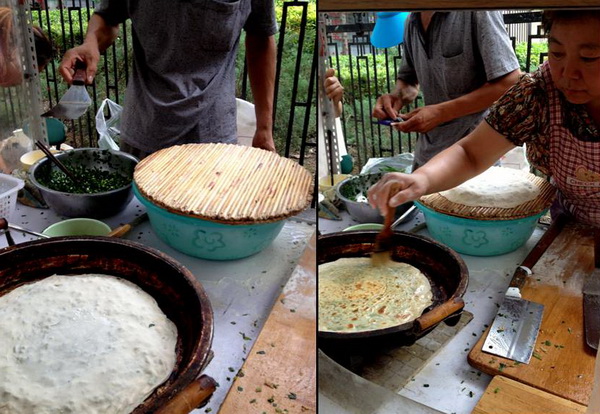 Beijing staat bekend om haar street food; hartige en zoete snacks die je op iedere straathoek kunt kopen. Het aanbod kent een rijke variëteit aan noedels en bāozi – gestoomde broodjes met alle mogelijke vullingen, tánghúlu (fruit op een stok met een suikerlaagje) en natuurlijk jiānbǐng.