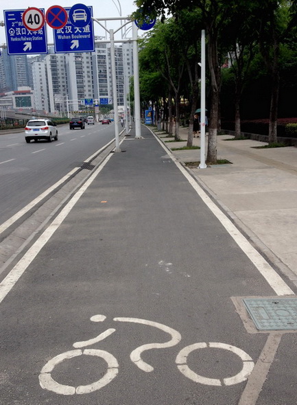 2) De paal van een verkeersbord midden op het fietspad plaatsen. Omdat ze hier in Wuhan toch niet snappen dat een fietspad voor fietsers is.
