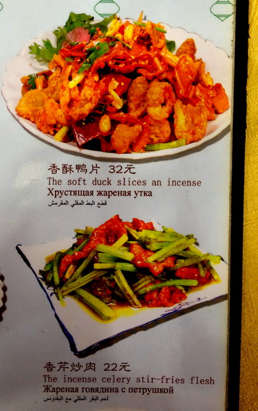 6) De namen van deze gerechten zijn grammaticaal correcte zinnen. Ik zie nu voor me hoe een zachte eend wierook snijdt, en hoe wierook vervolgens vlees roerbakt. Of het ook goed smaakt is natuurlijk een tweede.