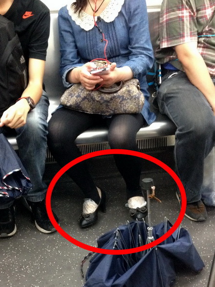 8) Zijn je schoenen niet waterdicht? Dan draag je in plaats van sokken toch gewoon plastic zakjes als het regent?