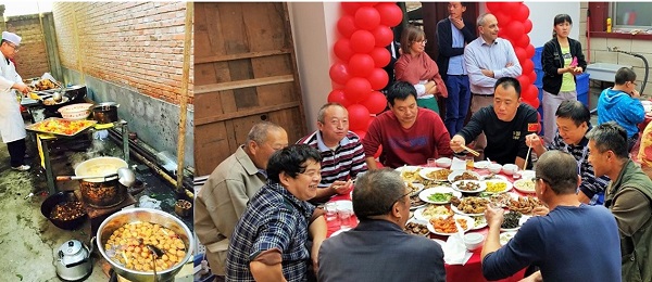 Zhang Yang’s moeder had het hele dorp opgetrommeld voor hulp, en samen hebben ze een overdadige lunch op tafel getoverd. In totaal waren er zo’n 90 gasten.