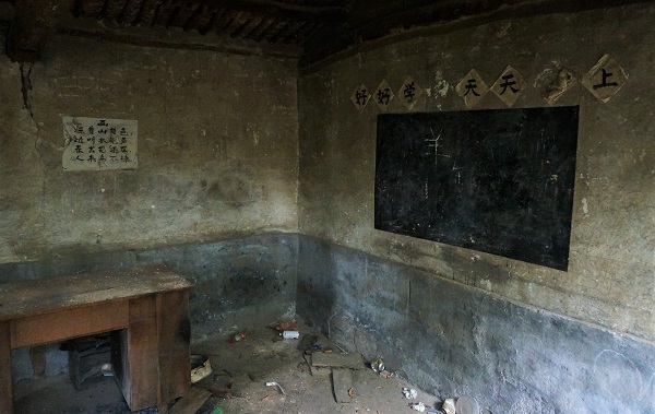 De huizen lijken soms gehaast verlaten te zijn, met achterlating van gebruiksvoorwerpen. In een ruimte die als leslokaal dienst deed hangt nog een vergeelde poster aan de muur die rituelen rondom Chinees Nieuwjaar verbeeld, en de leus “Hǎohǎo xuéxí tiāntiān xiàngshàng!”, wat “Leer hard, maak iedere dag vooruitgang!” betekent.