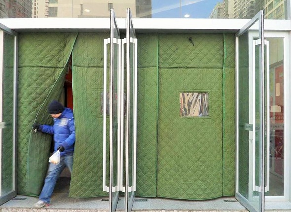 Hoe heet zoiets in het Nederlands? Erg effectief moet ik zeggen. Gebruikt men zowel in warenhuizen e.d. als thuis bij de voordeur. En als dat nog niet genoeg is, kun je altijd het raam tijdens de wintermaanden dichtplakken met doorzichtig plastic.