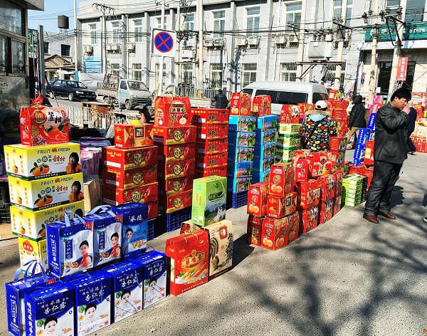 Onderweg zien we dat overal mooie verpakkingen met drank, fruit, koekjes en dergelijke worden verkocht; traditionele Nieuwjaarsgeschenken. Zelf nemen we vandaag bij ieder bezoek zulke cadeau’s mee, en chocola en stroopwafels uit Nederland.