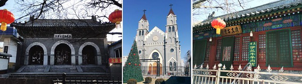 We lopen door Chángxīndiàn, dat net buiten een oude stadspoort ligt. Van oudsher overnachtten mensen die bij Beijing aankwamen nadat de stadspoort al dicht was in Chángxīndiàn, om de volgende ochtend de stad in te reizen. Daarom zijn er best wel wat voorzieningen, waaronder een boeddhistische tempel, een katholieke kerk en een moskee: