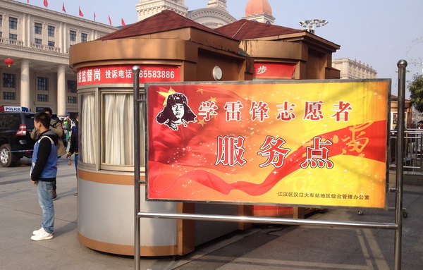 2) Op het station: “Service station van vrijwilligers die van Lei Feng leren”