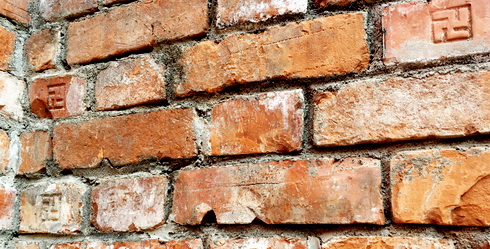 Als je voor het gebouw staat vallen ineens de swastika’s op die in de bakstenen zijn verwerkt: