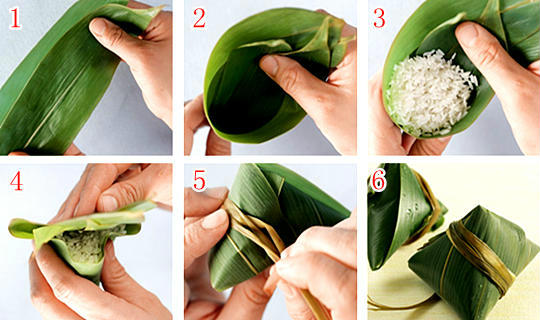 Voor een volledig recept & beschrijving voor het maken van zòngzi, zie hier (zoet) of hier (hartig).