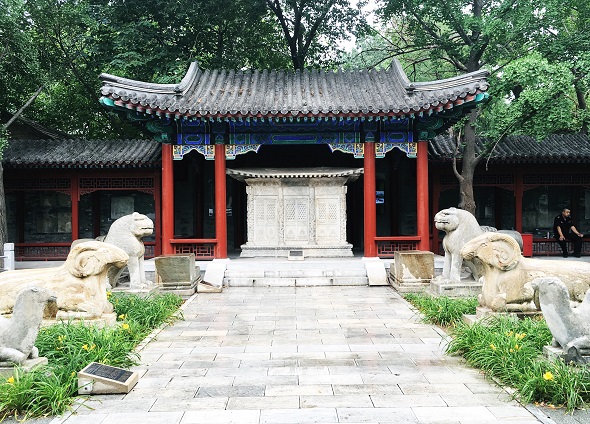 Achterin het tempelcomplex kun je in een van de nieuwe gebouwen in traditionele stijl een tentoonstelling over Chinese steenhouwkunst bezoeken; de boeddhistische tabletten in de tempel zijn hiervoor het uitgangspunt. Ook zijn de tabletten buiten weer netjes neergezet en aangevuld met beelden van mythische figuren. Ze worden begeleid door bordjes met uitleg in het Chinees en Engels.