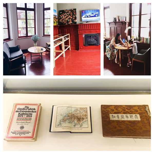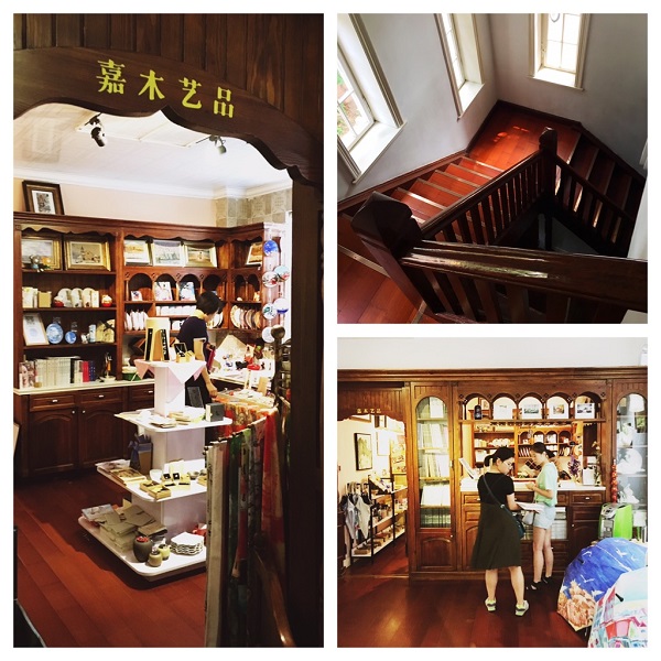 Op de begane grond is een tentoonstellingsruimte en een winkeltje waar kunst, souvenirs en boeken over Qingdao worden verkocht. De houten muur en bewerkte toegang tot de winkel zijn helemaal in zuid-Duitse stijl, wat Qingdao’s koloniale verleden goed voelbaar maakt.