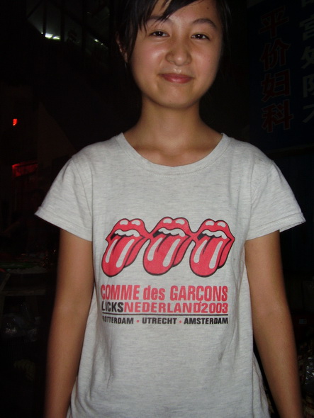 8) Op de vraag of deze dame daadwerkelijk aanwezig was bij één van de Comme des Garçons concerten in Nederland, keek ze me wazig aan. Waar had ik het over? Haar T-shirt? Oh, maar ze had geen idee wat de tekst betekende! Ze vond het gewoon een mooi shirt.