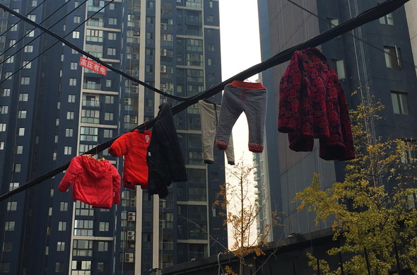 10) Wat men in Wuhan ook graag buiten te drogen hangt: schone was, aan een kluwen elektriciteitsdraden. De waarschuwing ‘hoogspanning’ die aan de kabels is bevestigd mocht hier niet baten.