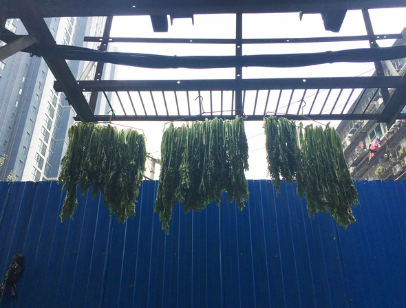 9) Tegen de winter hangt men in Wuhan overal kool te drogen. Met een voorraadje gedroogde Chinese kool kom je de winter immers wel door.
