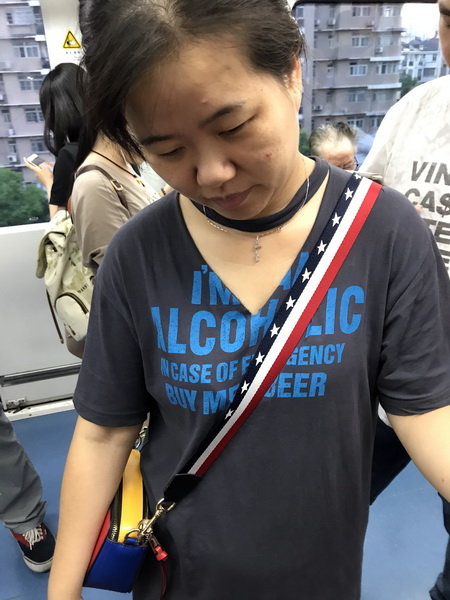 3) Als ik mensen tegenkom in de lift die dit soort opschriften op hun kleding hebben staan, weet ik nooit zo goed wat ik moet doen. Ze wijzen op de betekenis? Of het maar zo laten, omdat de persoon in kwestie blijkbaar geen benul heeft?
