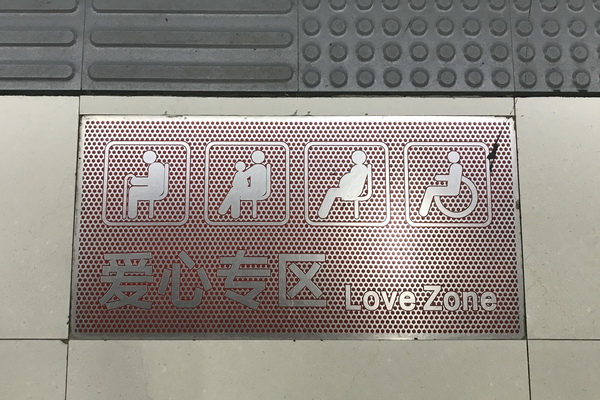 9) Love Zones op alle metrostations in Wuhan. Voor iedereen toegankelijk.