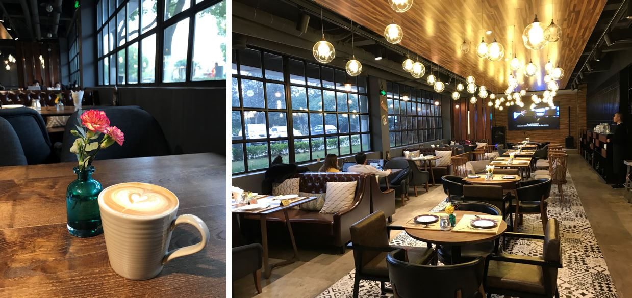 De inrichting doet erg westers aan, met glas-in-lood, veel lampen en comfortabele banken. De koffie is goed en het eten op het westerse menu ook. Denk aan salades, steak met friet, nacho’s en New York cheesecake. Op een groot scherm worden televisieseries, sport of films vertoond. Een mooie locatie om een middagwandeling in Hankou af te sluiten.