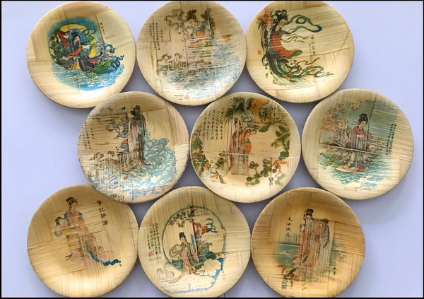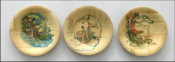 De eerste is een set bamboe schaaltjes met afbeeldingen van mythische vrouwen en teksten in fántǐzì, traditionele Chinese karakters. Deze schaaltjes heb ik van mijn opa en oma geërfd. Zij gebruikten ze om zoutjes te serveren als we ’s zondags op bezoek kwamen. Deze schaaltjes zijn heel bijzonder voor me, omdat ze mijn interesse in de Chinese taal en cultuur hebben gewekt – deels althans.