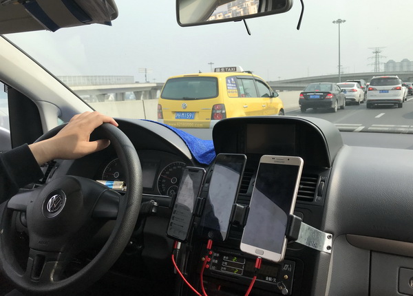 3) Alles gebeurt in China tegenwoordig online. En in China houdt online in, op een mobiele telefoon. Er is vrijwel geen cash betalingsverkeer meer, voor de beste route wordt de tomtom ingesteld, een taxi krijg je niet door langs de weg met je arm omhoog te gaan staan, maar boek je via een app. Iedere zichzelf respecterende taxichauffeur heeft daarom drie telefoons, netjes op een rijtje voor veilig en gemakkelijk gebruik. Eén telefoon om de route op weer te geven, één om via de app nieuwe ritten te zoeken, en één voor persoonlijk gebruik.