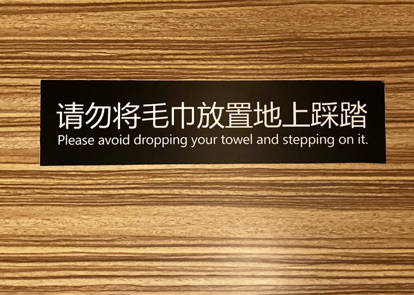 7) Maar gelukkig was ik wel in een vriendelijk zwembad, getuigt onderstaande waarschuwing, die duidelijk in de kleedruimte stond aangegeven.