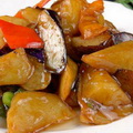 Dit gerecht uit Noordoost-China staat voor mij met stip op nummer één. Gebakken aardappel, aubergine en groene paprika. Dit gerecht is standaard in het noorden van China, omdat deze drie groenten het hele jaar door verkrijgbaar zijn. Door alle groenten kort in olie te bakken (guòyóu, letterlijk: door de olie heen wandelen) voordat je ze samen in een saus met knoflook gaart, worden ze knapperig zonder paneermeel te gebruiken.