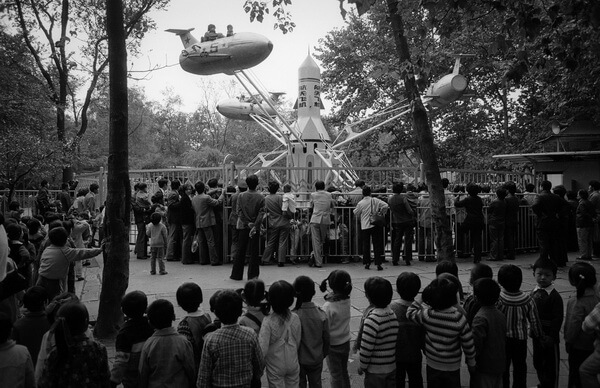 Niet alleen het contrast tussen China in de jaren tachtig dat je in het boek ziet en het China van nu is buitengewoon, het verschil tussen het China van de jaren tachtig en het westen in die tijd is dat net zozeer. Wanneer ik aan de jaren tachtig denk, denk ik aan MTV, schoudervullingen en fluorescerende leggings. Hoewel een aantal van Bradshaw’s foto’s modeshows van Franse ontwerpers laat zien, en hij op één foto een groep uiterst hippe Shanghainezen portretteert, laat het overgrote deel van de foto’s een eenvoudige maatschappij zien. De Shanghai Bund is werk in uitvoering, het aanbod in winkeletalages is eenvoudig, op de wegen zie je bijna geen auto’s maar vooral veel fietsen.