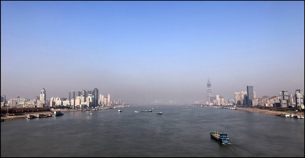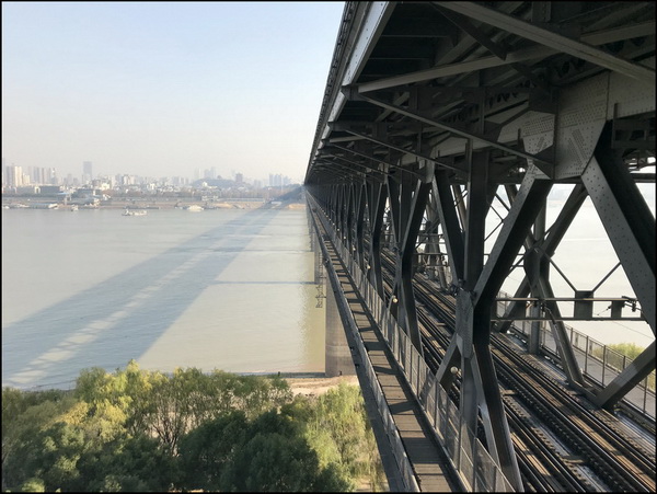 De brug is ruim 1,6 km lang, en als je er overheen loopt voel je hoe machtig de Yangtze is. De rivier stroomt snel, er gaat veel vrachtverkeer over, je ziet de Yangtze en haar zijrivier de Han samenkomen. Ook heb je goed zicht op de drie stadsdelen Hanyang, Hankou en Wuchang.