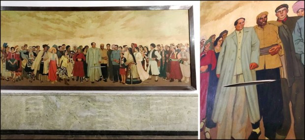 Je kunt hier de brug in en met een lift omhoog, naar het bovendek. Dat kost ¥2. Boven in de brug vind je een prachtig schilderij waarop alle 56 Chinese bevolkingsgroepen eensgezind achter Voorzitter Mao staan.