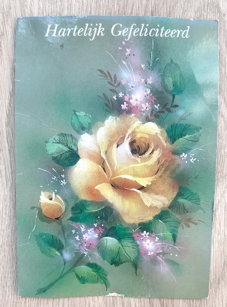 Ik vergeet nooit opa’s gezichtsuitdrukking toen hij op de bewuste verjaardag binnen kwam. Hij liep recht op me af en zei niets, maar had een brede grijns op zijn gezicht. Hij gaf me een envelop, en daaruit haalde ik deze kaart tevoorschijn: